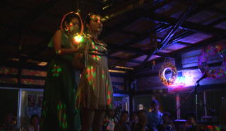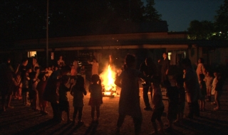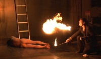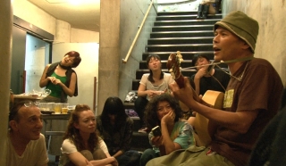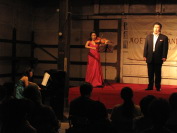 廃工場を利用した空間にこだわった公演。日が落ちる時間帯での本番では、徐々に迫り来る冷えが恐怖。ズームリングを操る指が凍えました。その後の火を囲んでの親睦会はホッ。