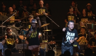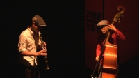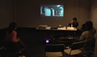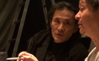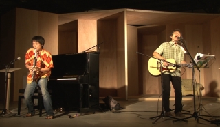 この画像はロビーでのアフタートーク。本日は6時間に及ぶステージが繰り広げました。そして昨日と違って、緊張感溢れる空気。それも、ピアノの千野秀一さんが、ピアノの上を歩いたり鍵盤の上に乗ったりかなりの暴力的なパフォーマンスに、たまらず舞監が止めに入り一悶着りました。これには皆さん激怒だったようです。しかし、アイカワさんへの想いは皆同じ。