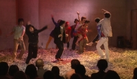 前回は、アメリカングラフティ的でした。今回は、親分の後目を狙っての攻防戦。ゴットファーザーのテーマが流れますが、衣裳や小道具は絶対日舞。お茶目なみなさんです。